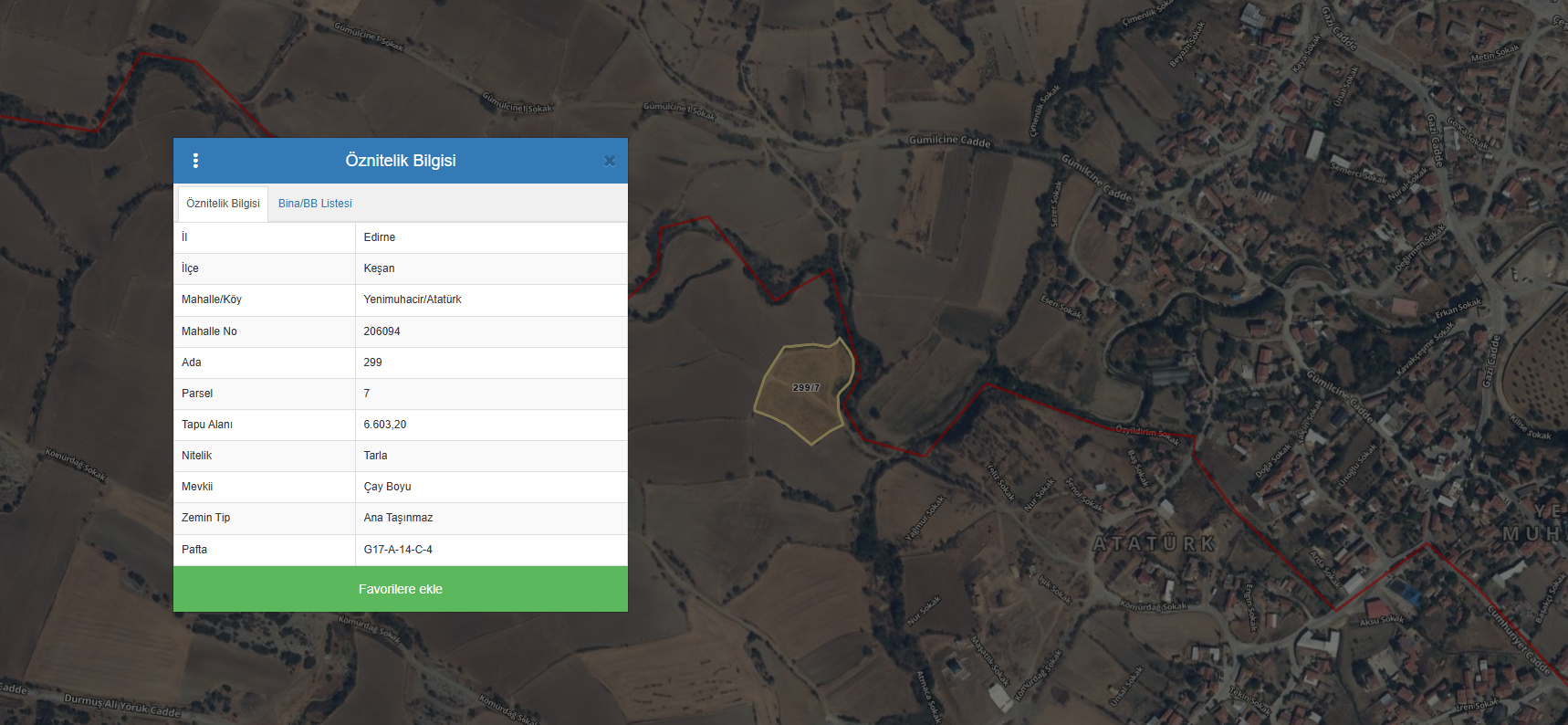 Edirne Keşan Yenimuhacir Atatürk Mahallesi’nde bulunan 299 ada 7 parsel, 6.603 m² büyüklüğünde ve imar sınırında yer alan çok değerli bir yatırım arazisidir. Parsel TOKİ konutlarının hemen yanında, çevresi tamamen yerleşim ve imarlı alanlarla çevrili gelişmekte olan bir bölgede bulunmaktadır.